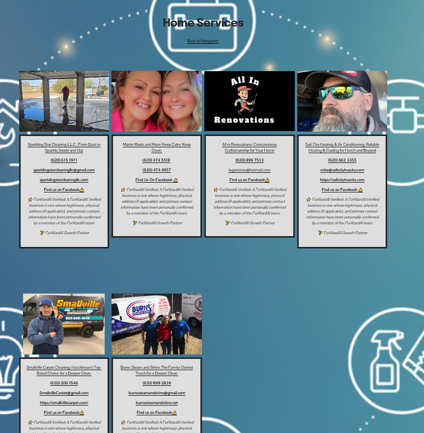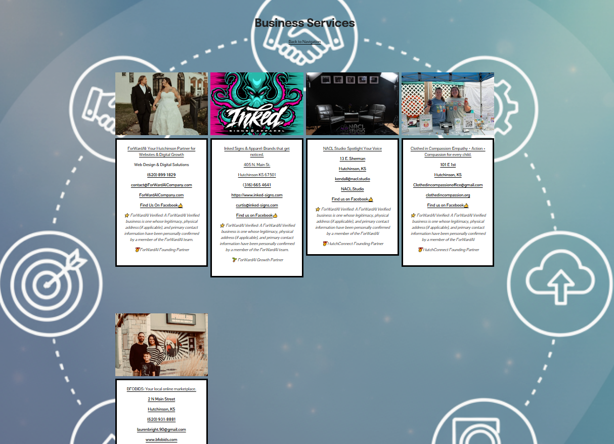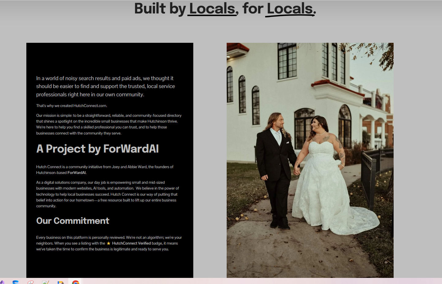 HutchConnect is a community-driven digital platform built entirely by ForWardAI to strengthen the local business ecosystem in Hutchinson, Kansas. What began as an experiment in local collaboration quickly evolved into a full-scale digital growth network connecting dozens of small businesses, creators, and entrepreneurs.