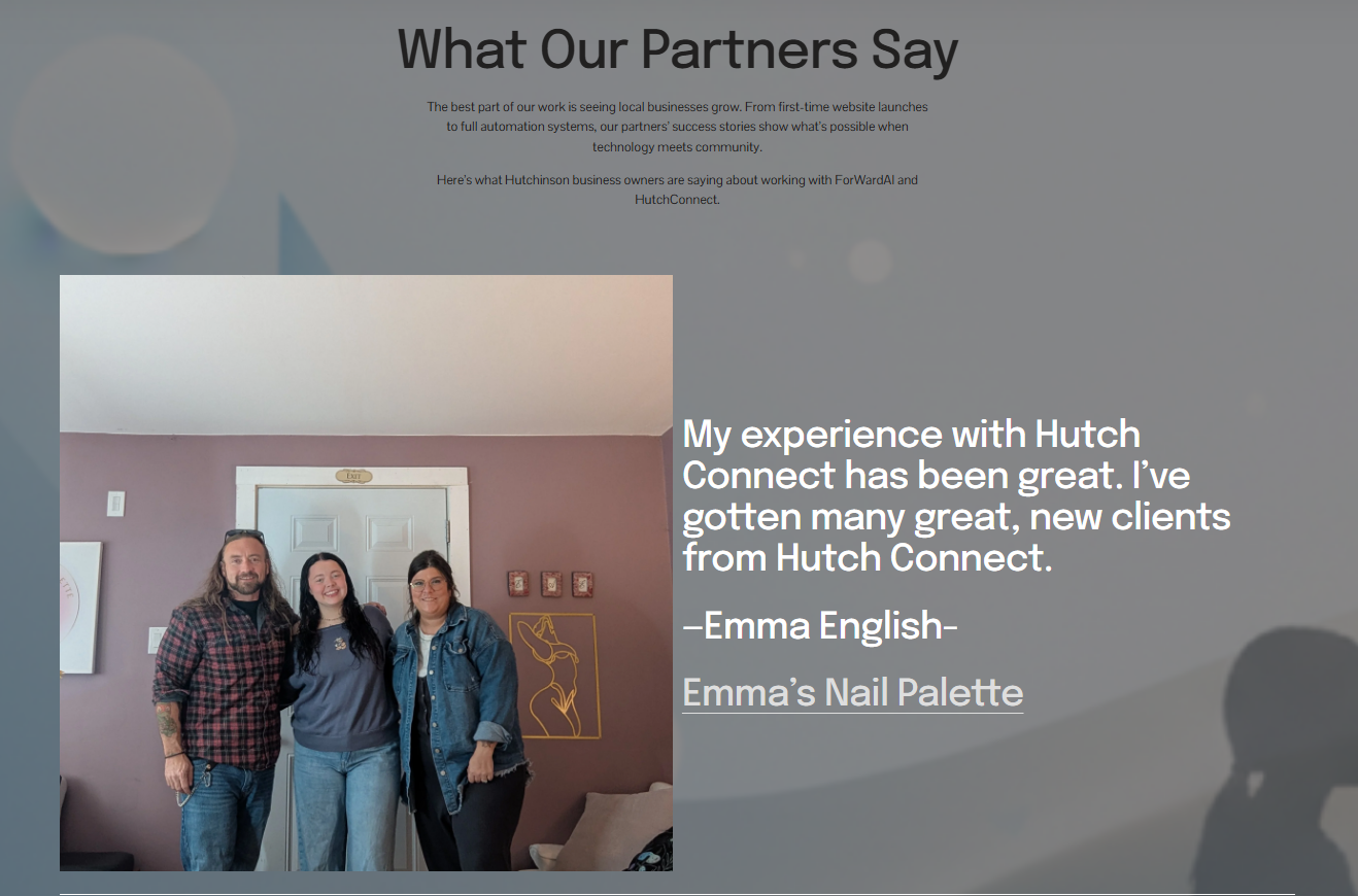 Today, HutchConnect stands as both a living portfolio piece and a working example of how ForWardAI’s website, automation, and AI services come together to power real-world results — right in our own community.